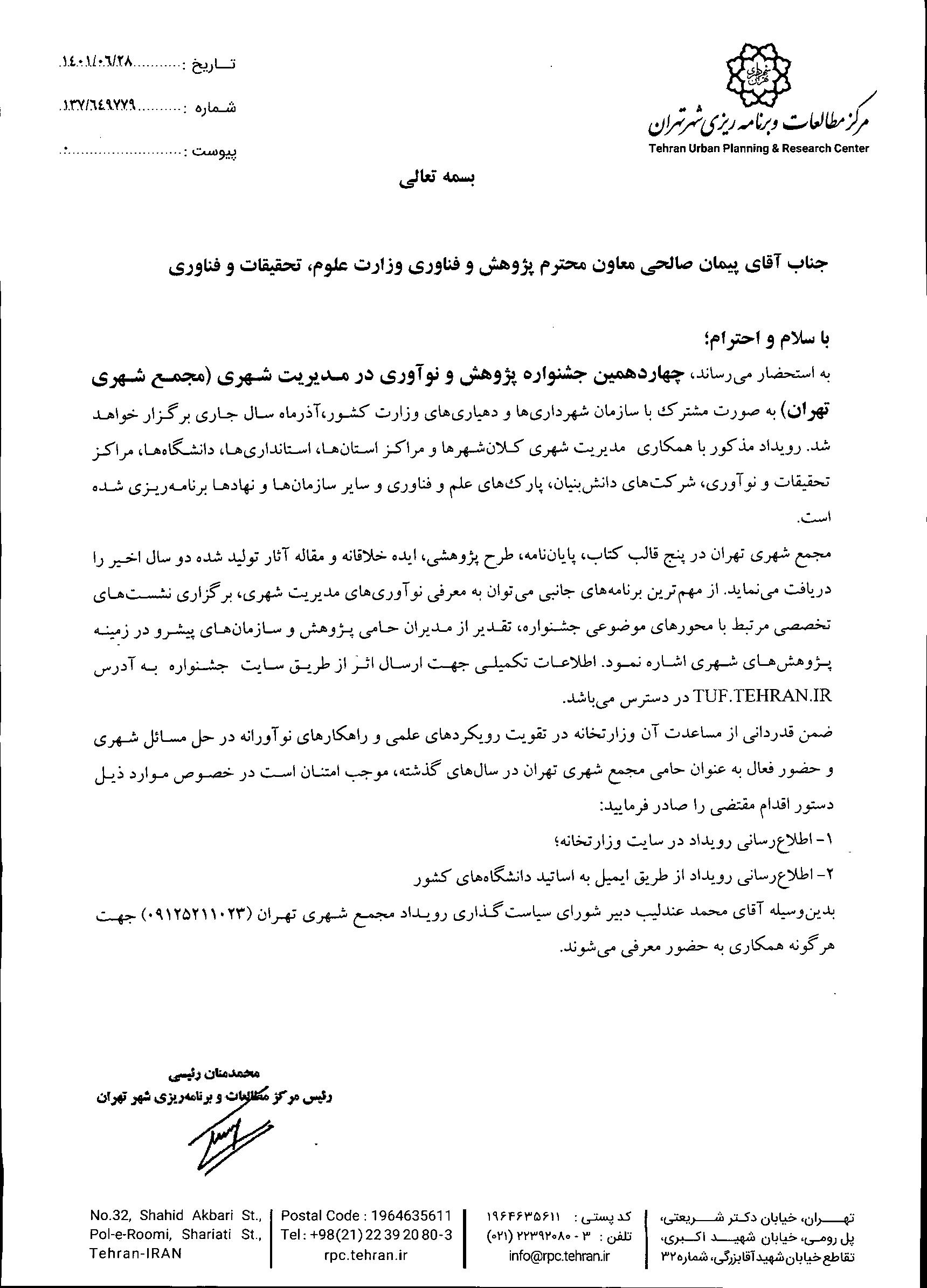 اطلاع رسانی جشنواره پژوهش و نوآوری در مدیریت شهری